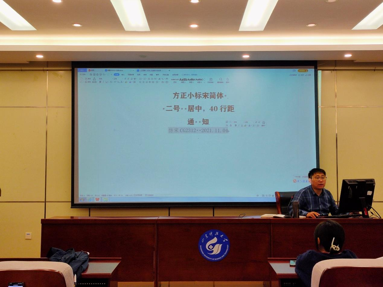 11月4日,3044am永利集团3044noc“晨露课堂”第一期培训会在J9-135开课,本次培训课程的主题是“公文写作”,由团委辅导员老师任永合担任主讲,学生会各部门干事、各团支部委员参加。