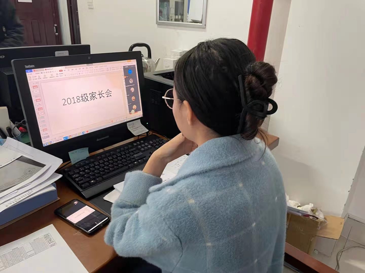 2018级辅导员贾俊婷向家长们介绍学院2020届毕业生的就业状况并分析了2021届毕业生的就业形势和就业压力,针对如何提升考研升学与毕业就业的问题,为与会家长客观详细的梳理了考研的相关政策与学院为促进高质量就业的暖心举措。此外她强调,在当前疫情防控形势下,学生和家长能清晰认识当前就业形势,起到家校互联的作用,通过学校、家庭以及社会共同的努力下,助力学生高质量就业。