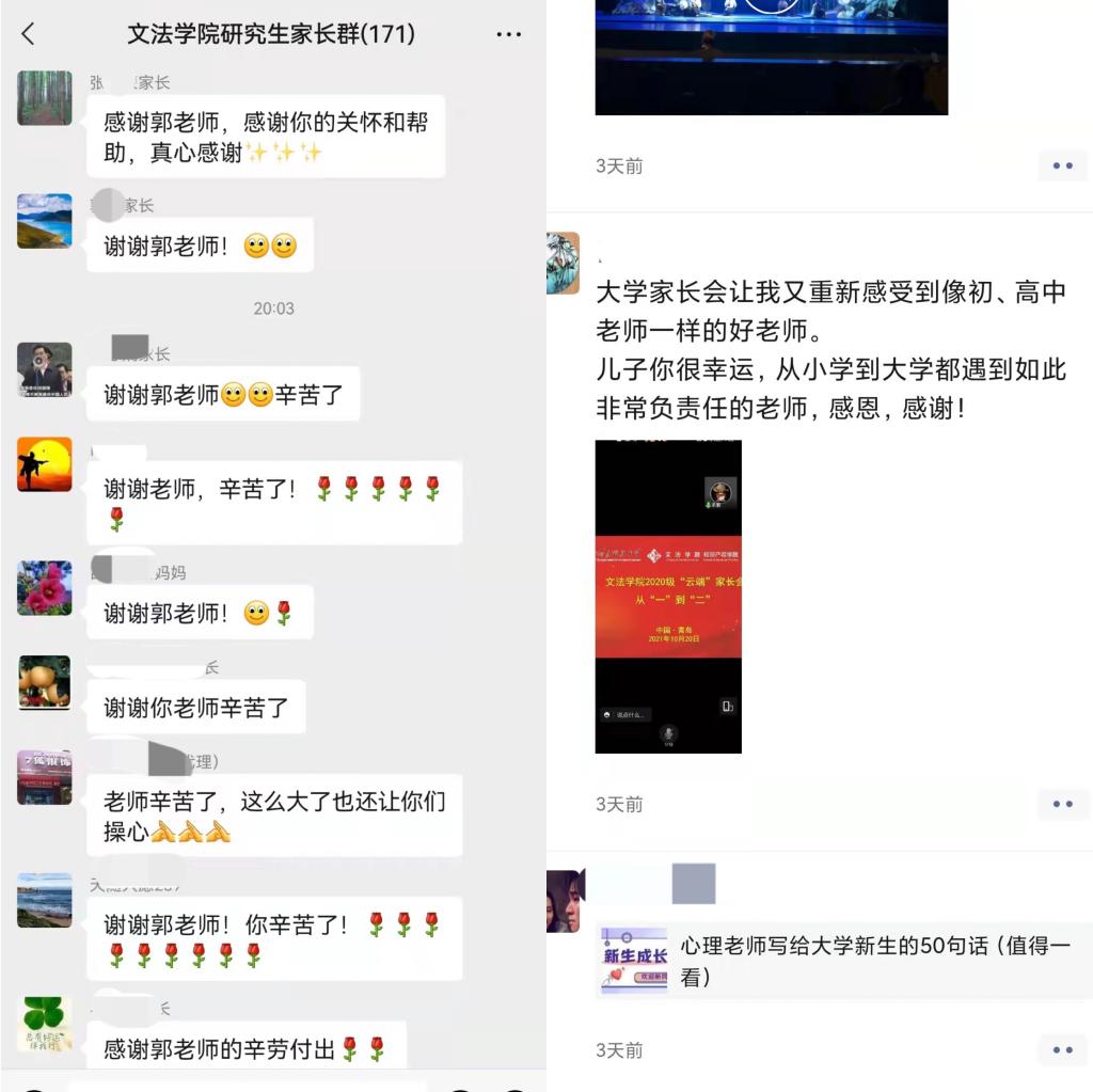学生家长们对学院召开的线上家长会给予充分肯定,表示将积极参与家校协同育人机制建设,主动与辅导员保持联系,做好学生大学生活的陪伴与引导。