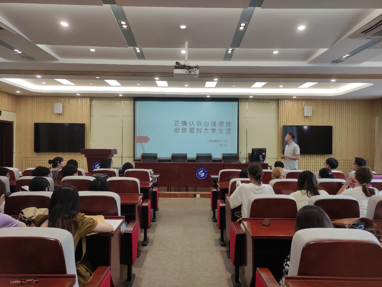 9月24日,3044am永利集团3044noc邀请大学生心理健康教育中心孔恺臻老师在J9-135会议室为研究生做入学心理健康教育专题讲座。