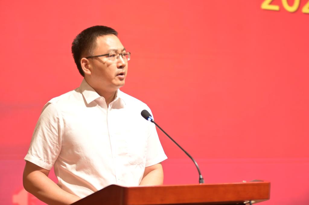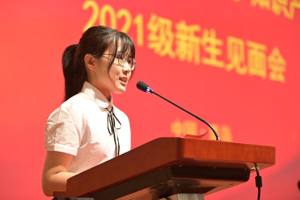 教师代表董健、在校生代表王筠涵、新生代表刘星雨分别发言,为建党百年和学校建校70周年送上美好祝福,表达了教师勇担立德树人使命,学生努力学习、不断进取、成就青春之“文法人”的决心。
