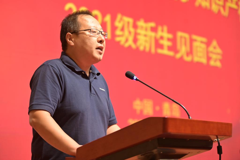 院长孙法柏教授从学院历史、师资力量、学科建设、教学理念等方面向新生介绍了学院基本情况并希望2021级同学要用实际行动,实现一名优秀大学生、优秀文法人的梦想,完成从高中生到大学生的蜕变,从少年到青年的蜕变。他寄语同学们,一要明德惟馨、厚德载物,做伟大梦想的信仰者。努力争做社会公德、职业道德、家庭美德、个人品德的践行者、弘扬者和维护者,成为有大爱大德大情怀的人。二要潜心求学、奋勇争先,做伟大梦想的奋斗者。尽快融入集体,了解所学专业,勇敢担当起时代赋予的职责,将自己的专业学习和人生理想融入到国家的发展中,同频共振,为学校、为社会、为国家做出属于“文法人”的积极贡献。三要实干担当、知行合一,做伟大梦想的实践者。做起而行之的行动者、奋斗者、进取者,以学思践行感恩学校、以聪明才智贡献国家、以开拓进取服务社会。