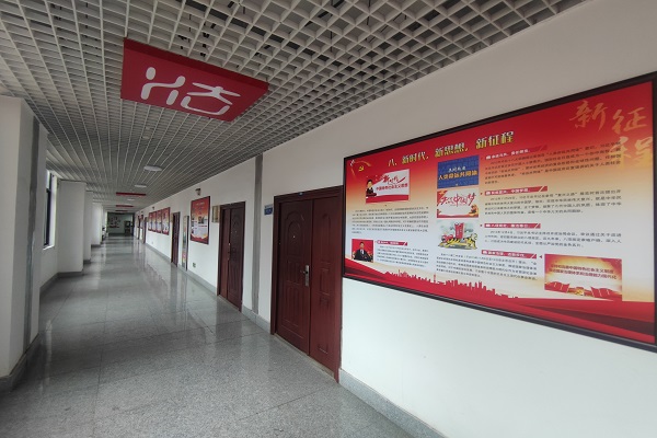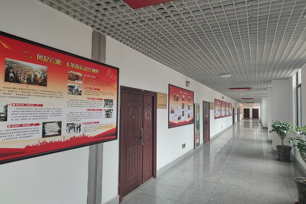 为进一步丰富学习形式,拓宽教育渠道,学院精心打造了“党史文化长廊”。主要包括“革命洪流:中国共产党成立曙光升”、“风起云涌:大革命运动九洲呼”、“风暴席卷:土地革命渐燎原”、“中流砥柱:抗日战争贯长虹”、“宏篇巨著:解放战争民心向”、“红星闪耀:新中国成立伟业兴”、“浪潮兴起:改革开放春雷响”、“新时代、新思想、新征程”等八个部分,系统全面的将党的百年奋斗史与辉煌发展史浓缩成一条党建文化长廊,讴歌中国共产党带领全国人民从一个胜利走向另一个胜利的丰功伟绩,让严谨的党史知识凝练、鲜活地展现在师生面前,进一步激励广大师生“学史明理、学史增信、学史崇德、学史力行”。