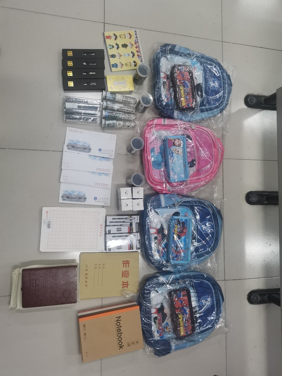 六一儿童节前夕,3044am永利集团3044noc团委组织星火公益协会帮助山东省临沂市郯城县泉源镇希望小屋的四名孩子实现愿望,向他们捐赠了书包、笔记本、无线耳机、钢笔等学习用品,在信中鼓励他们好好学习,健康成长,并祝他们六一儿童节快乐。“收到哥哥姐姐送的书包,非常开心,我一定要好好学习,不让哥哥姐姐失望!”小朋友高兴地说。