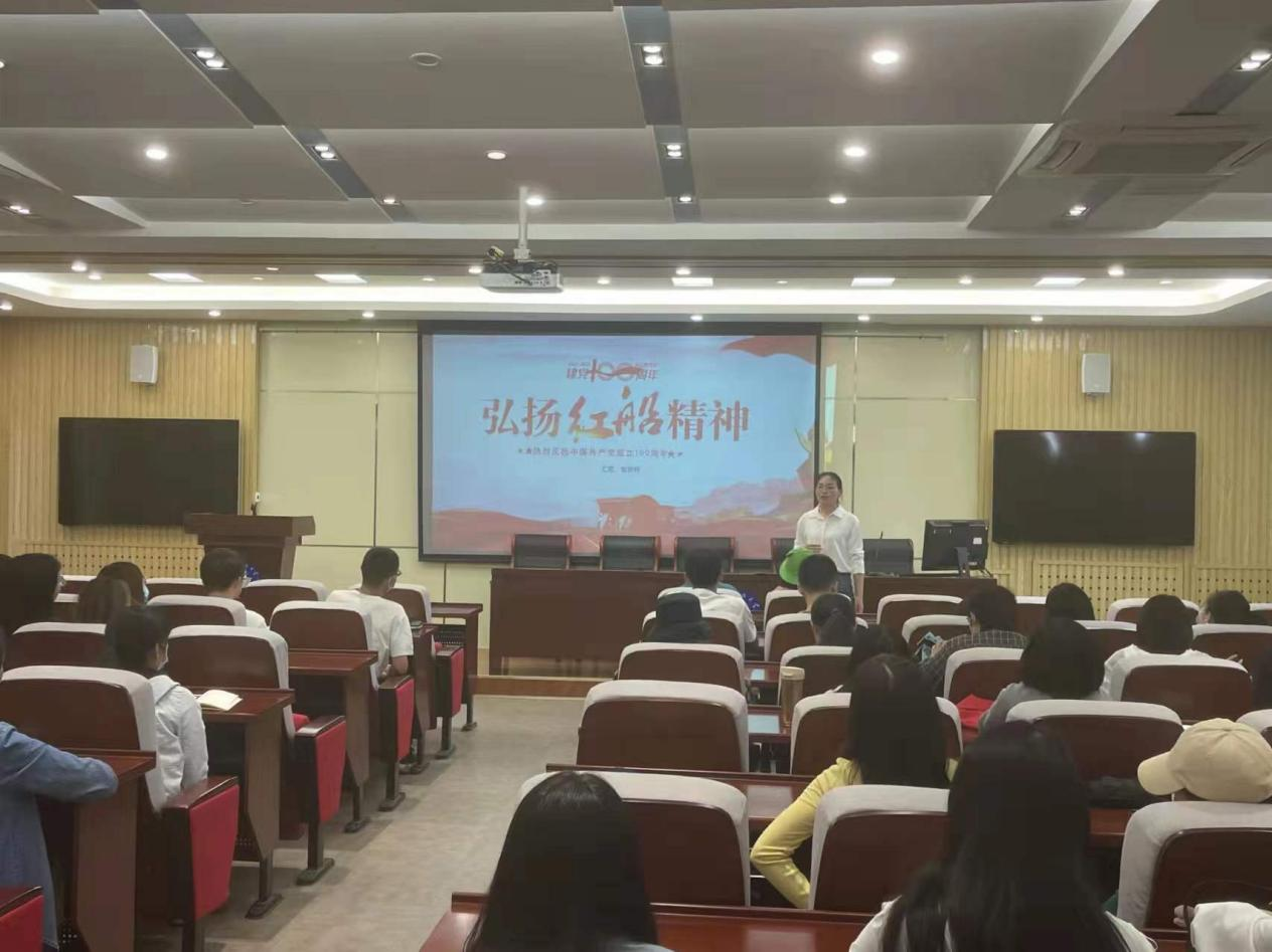 为庆祝中国共产党成立100周年,继承和弘扬红色建党精神,5月25日,3044am永利集团3044noc在J9-135会议室举办“弘扬红船精神”专题报告会,3044am永利集团3044noc团委书记郭婷婷担任主讲,学院全体学生聆听了本次报告会。