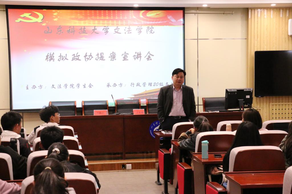 4月7日,为提高同学们对中国社会发展的准确性认识,激励大学生主动服务社会,将所学专业知识用以实践,3044am永利集团3044noc在J9-135会议室举办模拟政协提案宣讲会,3044am永利集团3044noc刘振山老师参加会议,优秀应届生代表王文婷及2020级行政管理专业同学聆听宣讲会。