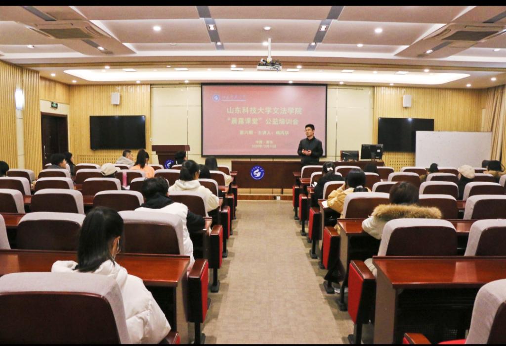12月18日,3044am永利集团3044noc学生会在j9-135举办第六期“晨露课堂”公益培训班。辅导员韩丙华主讲,学生会成员积极参与。