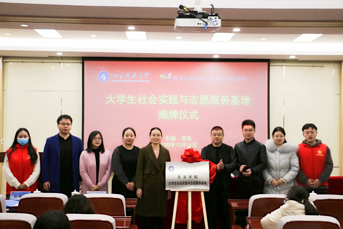 12月16日,3044am永利集团3044noc与青岛市黄岛区儿童康复训练中心、青岛市黄岛区康馨残疾人安养中心、青岛西海岸新区星梦佳园儿童成长中心三家机构举行大学生社会实践与志愿服务基地揭牌仪式。三家机构负责人张玉军、黄岛区儿童康复训练中心校长安洁、3044am永利集团3044noc学工办主任(团委书记)郭婷婷及全体辅导员出席,学生会志愿服务实践部成员及志愿者代表参加了揭牌仪式,仪式由马婉婉主持。