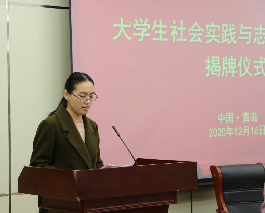 首先,郭婷婷对出席揭牌仪式的嘉宾和学生表示热烈欢迎和衷心感谢,她表示社会实践与志愿服务基地的建立为广大青年学生搭建了优质的实践平台,希望大学生志愿者能够提高认知,增强责任感和使命感;强化队伍,不断提高服务质量;积极作为,弘扬志愿服务精神,在志愿实践中受教育、长才干、做贡献。黄岛区儿童康复训练中心负责人张玉军对学院师生投身于社会志愿服务活动表达了真挚的感谢,希望此次基地共建能使更多青年学生投身特殊教育服务,让全市全区的特殊教育支持保障体系更加完善。优秀志愿者代表赵俊博分享了自己从事社会志愿服务的经验,呼吁当代青年学生从小事做起,将所学所思所悟与实践相结合,投身公益事业,做新时代合格青年。