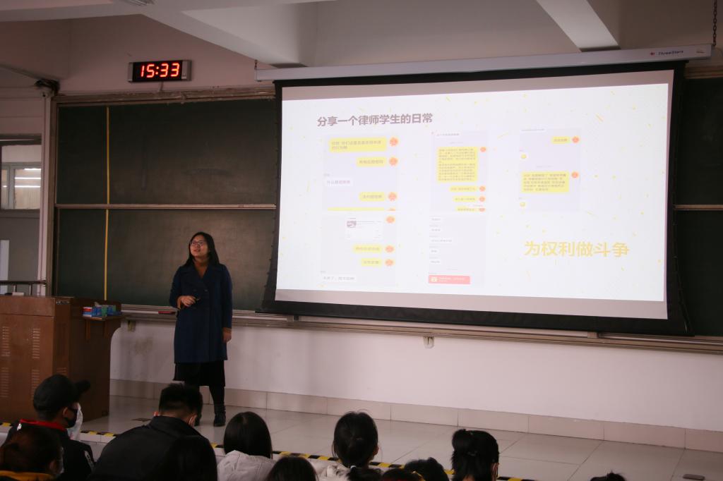 宣讲伊始,马婉婉以宪法入题,从宪法典的组织架构着手,让同学们对贯彻实施《中华人民共和国宪法》、弘扬宪法精神有了深刻的认识;接着,她以自己的学习生活经历为引子,讲述了在她身边发生的民法案例,从民法总则编开篇立论,先后结合经典生活案例对物权编、合同编、人格权编、婚姻家庭编、继承编、侵权责任编等内容进行讲解,案例选取贴近生活,内容讲解深入浅出,勾起了学生深入了解《中华人民共和国民法典》的好奇心,为学生学习《中华人民共和国民法典》的出台背景和时代意义提供了一个较好的角度。