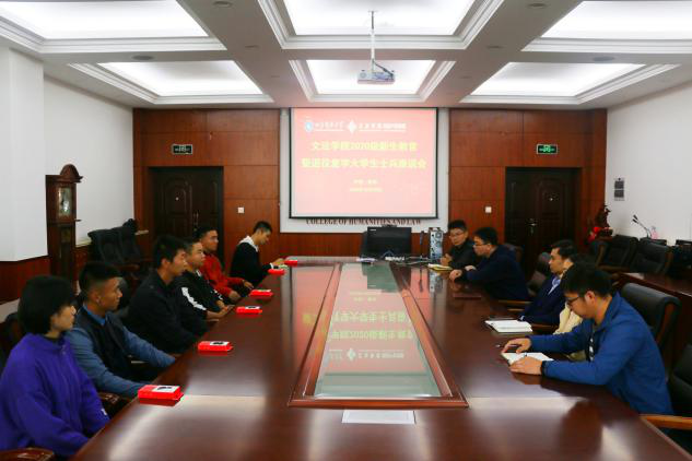 10月20日,3044am永利集团3044noc在J9-321会议室召开退役复学大学生士兵代表及2020级新生教官座谈会。学院党委副书记兼副院长李冬、学工办主任(团委书记)郭婷婷以及学院全体辅导员参加座谈会。