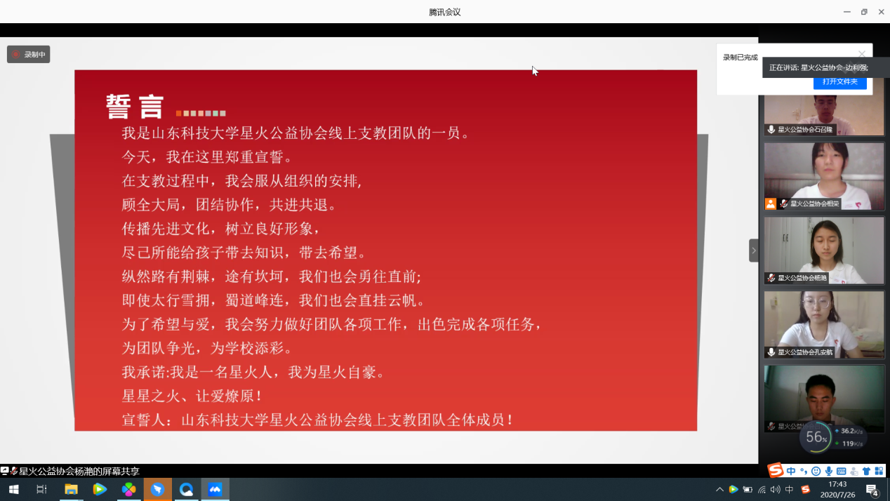 8月9日的总结班会上,家长、老师、学生都进行了发言,总结了活动过程中的收获和感悟。虽然由于疫情,支教老师们始终无法和学生们在线下见面,但有学生为老师写了长信来表达自己的感谢,也有学生在老师生日时做了视频祝福老师。这14天的点点滴滴将支教队员和学生们的心汇聚到一起,而在将来,星火永远不灭,会一直照亮这些孩子和更多孩子们遥远的梦。(郭婷婷 孔安航)