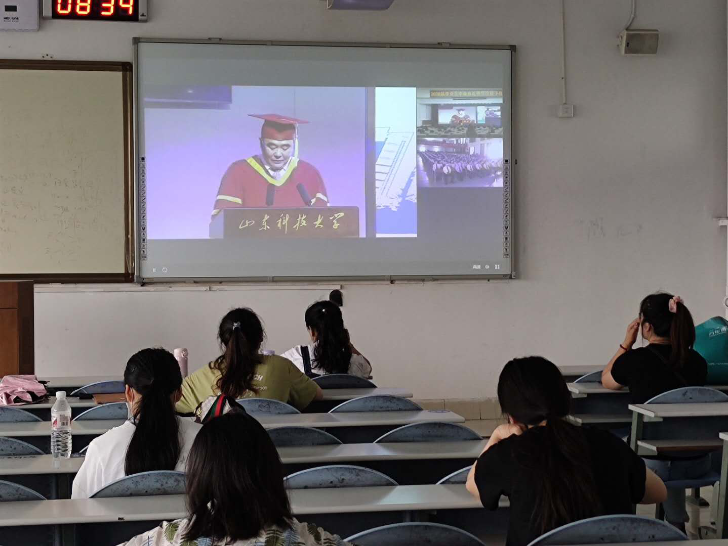 6月24日,3044am永利集团3044noc组织返校毕业生在J1-325教室、J9-135会议室收看永利3044noc2020届毕业生毕业典礼直播。