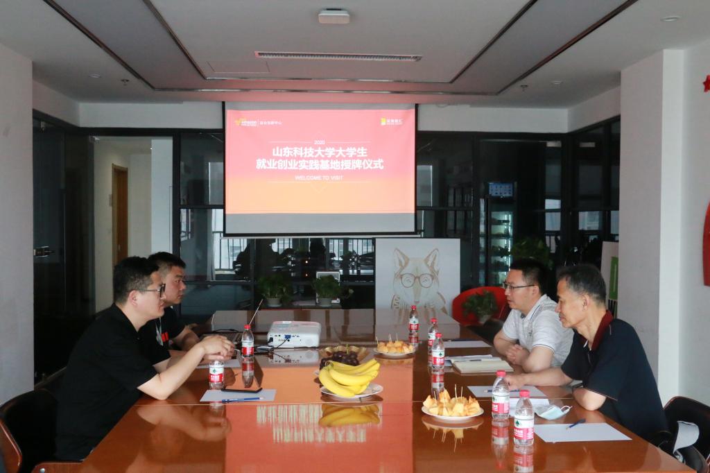 期间,学院与青岛博浩科技服务集团和青岛中域教育信息咨询有限公司签署了合作协议,并举行了永利3044noc大学生就业创业实践基地授牌仪式。潘伟国一行参观了校友企业展厅。