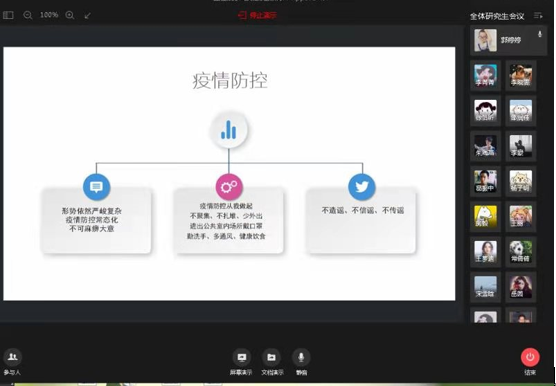 6月5日,3044am永利集团3044noc通过腾讯会议开展研究生“众志成城 共克时疫”线上团课,学院团委书记、研究生辅导员郭婷婷担任主讲人,全体研究生参加线上学习。