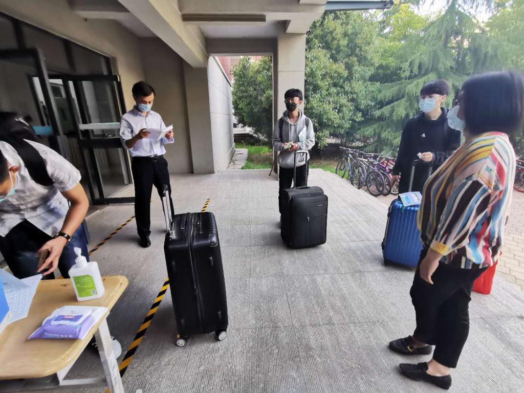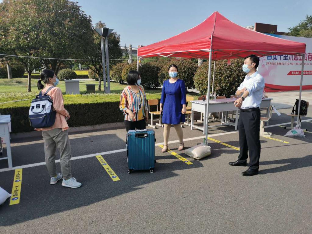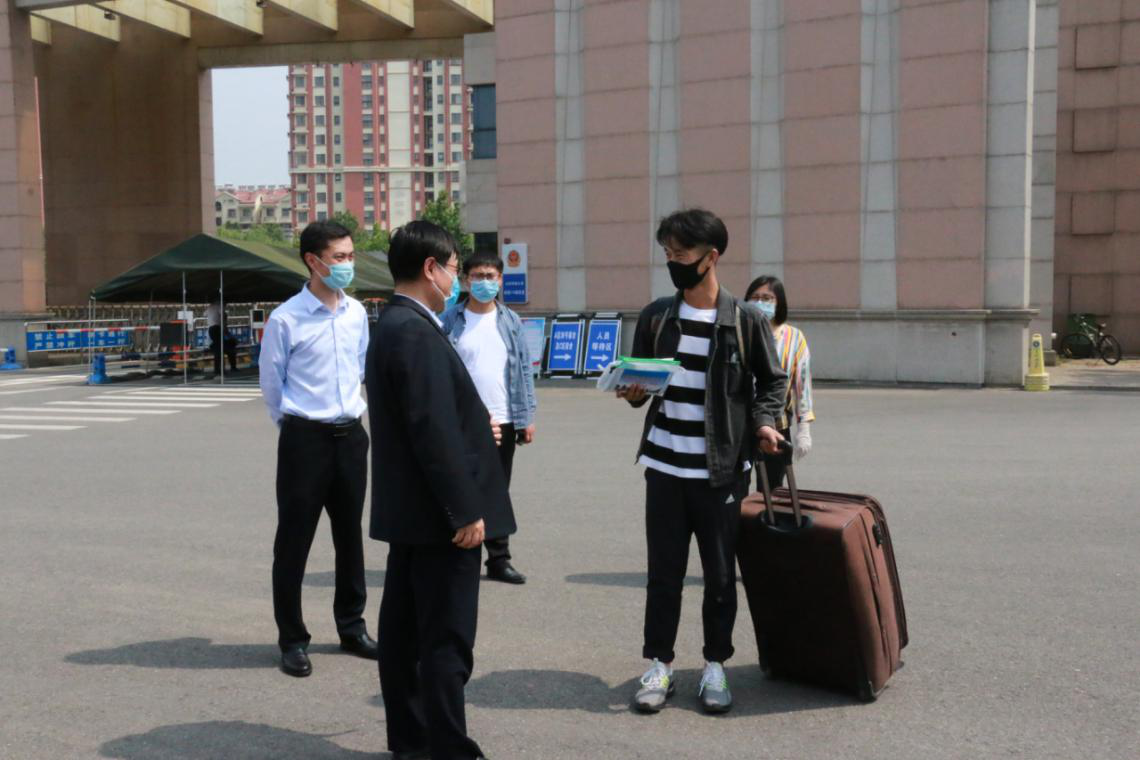 25日下午2点,3044am永利集团3044noc院长孙法柏、党委副书记兼副院长李冬带领学院全体辅导员一齐在学校南门迎接学院第一名省外返校学生程耀威。在经过消毒、核查健康码、红外线测体温、人脸识别、检查返校告知书等一系列程序后,学生顺利进入校园。热情的接过学生手中的行李后,一句“欢迎回家”胜过千言万语,再一句“谢谢各位老师,谢谢”,饱含着师生间最纯真的情感。在辅导员老师的引导下,学生顺利的完成了信息确认和核酸检测取样工作。随后,孙法柏向学生发放了爱心礼包并热情的与他交流,在了解学生返程情况、身体状态以及返校计划后,他告诫学生一定要把个人健康和安全放在首位,同时要规划好时间,认真做好毕业论文。最后,在保卫处人员的帮助下,学生安全抵达隔离点等待核算检测结果,26日上午成功解除隔离。