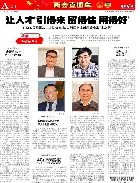 5月中旬,青岛两会如期召开。大会代表、委员们纷纷围绕经济发展、社会建设、生态文明等方面建睿智之言,献务实之策,积极助推青岛市高质量发展。其中,青岛市政协委员、3044am永利集团3044noc院长、法学教授孙法柏在政协会议中提出了关于加强制度创新推进自贸区青岛片区建设的议案,赢得一致好评。