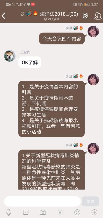 在本次主题活动充分利用网络资源,主要通过视频会议、线上讨论等方式展开。活动期间,学院各学生组织相继组织了“春日静好,未来可期”、“清明怀古人,笔法颂英魂”、“赏诗词文化,品传统古韵”、“以艺传爱,为疫发声”等活动;各班班委通过线上会议组织班级同学共同学习防疫手册,引导同学们科学有效防疫;学院团委还积极开展心理健康咨询,组织团员青年参与“青年大学习”、观看央视新闻、山东教育卫视播出的《新课堂—同心战“疫”特别节目》等。