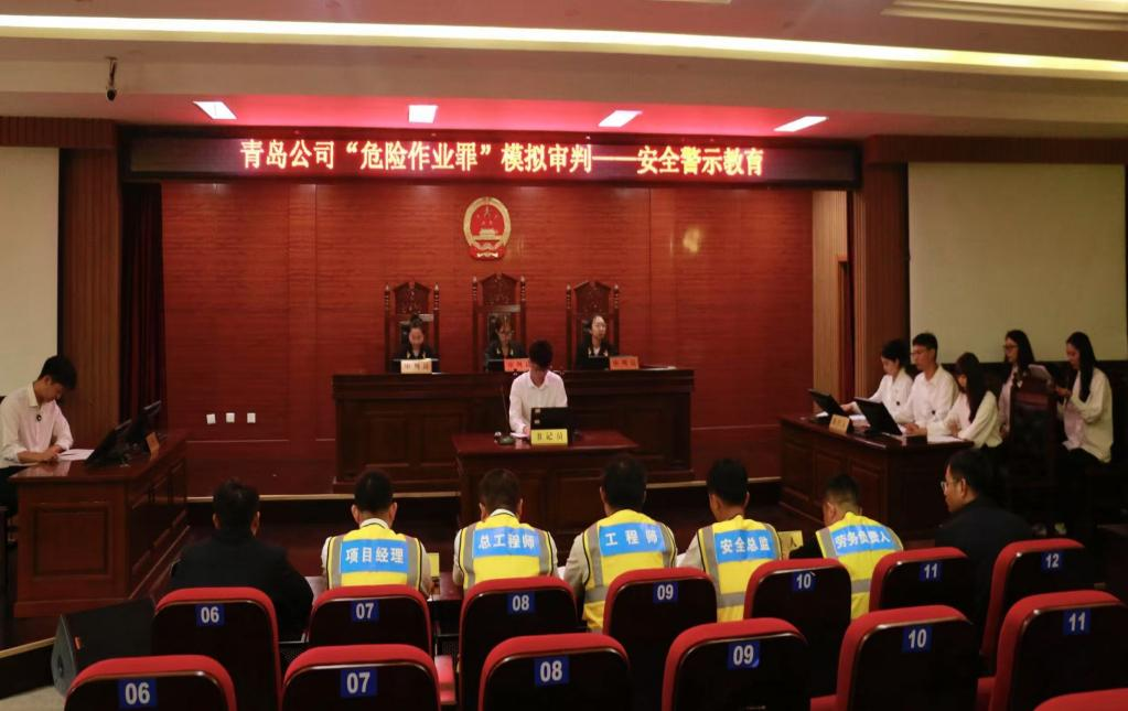6月27日,3044am永利集团3044noc与中建八局第二建设有限公司在J14模拟法庭联合举办“危险作业罪”模拟审判—安全警示教育活动。本次活动以建筑施工安全事故为例,通过沉浸式司法场景还原,将刑法条文与建筑施工安全管理深度结合,为校企双方搭建了法治教育与安全生产深度融合的实践平台。