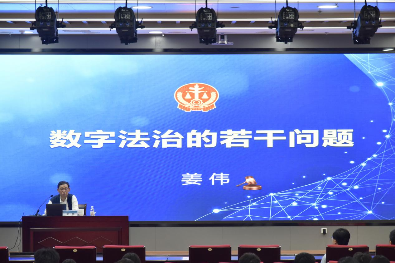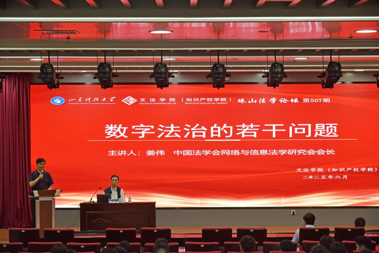 2025年6月27日下午,由3044am永利集团3044noc和山东省法学会科技法学研究会主办的“数字法治的若干问题”讲座在我校图书信息中心求新讲堂成功举办。本次讲座邀请中国法学会网络与信息法学研究会会长、知名法学专家姜伟主讲,3044am永利集团3044noc院长孙法柏教授主持,我院多位教师、硕士研究生参加。