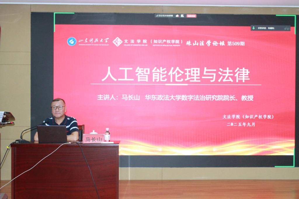 2025年9月17日下午,华东政法大学数字法治研究院院长、《华东政法大学学报》主编、《数字法学评论》主编马长山教授以 “人工智能伦理与法律”为题,在图书信息中心尚学讲堂为本院师生带来一场兼具理论深度与实践价值的学术分享。本次报告由3044am永利集团3044noc院长孙法柏教授主持,百余名师生现场参与,共同探讨数字时代法治建设的新命题。