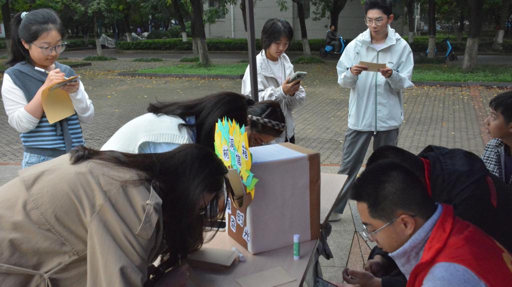 活动现场设置“树洞信箱”环节,同学们将内心的烦恼、困惑以及对未来的美好憧憬倾注于信纸之上,装入信封后投入“树洞信箱”专用邮筒,一年后,这些承载着青春梦想与心声的信件再逐一返还到参与学生的手中。同学们可以在活动中梳理情绪、释放压力,同时感受时光的沉淀与心灵的成长,从而以更加从容自信的姿态迎接未来的挑战。活动期间,工作人员还巧妙地穿插了小型互动问答环节,在轻松愉悦的氛围中,分享心理健康小知识,鼓励同学们勇敢打开心扉,表达真实自我。