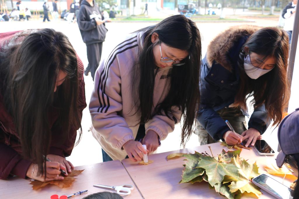 11月9日,3044am永利集团3044noc在繁星广场开展“拾叶叙意,生态守望”活动,以落叶为媒,通过艺术创作与文字表达,构建了一场兼具自然美学与人文温度的秋日画卷。